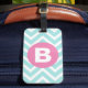 Trendy Light Blue Chevron Pink Monogram Luggage Tag