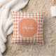 Trendy Light Orange Checked Monogrammed Name Cushion