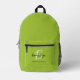 Trendy Lime Green Black White Monogram Name Printed Backpack