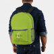 This personalised backpack features a monogram and first name in modern black and white script on a trendy lime green background. Add the full name below in black sans serif font. Ideal for back to school!