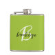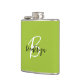 Trendy Lime Green Black White Script Monogram Hip Flask