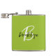 This elegant personalised flask features a monogram and first name in modern black and white script on a trendy lime green background.