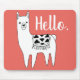 Trendy Llama Sketch Hello in Coral Mouse Mat