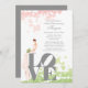 Start off your event off right with our trendy bride sitting on the word love set on a field of hearts background in pink, green & grey Bridal shower invitation. Just customise our invitation with your wedding information and you're all set to go. Available in other colour combinations in our shop at www.celebrateitweddings.com. Check out our matching thank you notes, stickers and bridal buttons in our shop