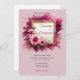 Trendy magenta flowers and gold frame wedding invitation