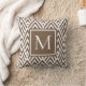 A trendy arrow diamond deco pattern throw pillow in toffee brown. Personalise by adding your monogram.