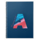 Notebook with monogram. Colourful letter A on blue backgroud.