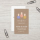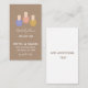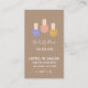 Modern and trendy minimalist design features trio of nail polish bottles on tan background with white font. Additional details can be added to back of card.