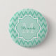 Trendy Mint Green Chevron Zigzag Name and Monogram 6 Cm Round Badge