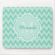 Trendy Mint Green Chevron Zigzag Name and Monogram Mouse Mat