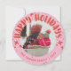 Designed to fit the circle die-cut card template, this trendy holiday card features the message "Happy Holidays" in a cool, handwritten font that wraps around the customer's photo. Hand-drawn stars and dots add a festive, whimsical touch to the design. The back of the card features a coordinating star and dot pattern.