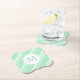 Trendy Modern Monogram Template Mint Green Stripes Paper Coaster
