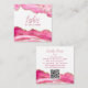 Trendy Modern Pink Script Agate QR Code Square Business Card