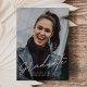 This Modern Simple Script Two Photo Graduation Announcement features a full size photo on the front with white text overlay and a back photo with optional details.