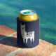 Start some llama drama with this awesome can cooler! It's trendy and cute sketchy style llama drawing is in bold black and white over a dark navy with white swiss dots!