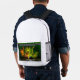 Lightweight and durable, our custom all-over-print Backpack is just what you need. The spacious interior is ideal for travel, school, gym, or any mobile storage need. Bring your stuff with you in style! Features Adjustable padded shoulder straps, two chambers on the inside for laptop storage, mesh side pockets and an identification label.