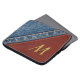 Denim and leather never go out of style. The look of denim stitched to soft leather diagonally across the design. The customizable monogram initial has a 3 dimensional look.