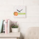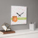 A trendy dotted line pattern clock with neutral red, brown, and green stripes against a white background, wrapped with a geometric mod square and circle design. Personalise by adding your name and initials. Perfect fashion for the modern and stylish woman.
