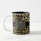 Trendy Monogram Leopard Print | Black Grey & Gold Two-Tone Coffee Mug