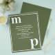 Simple minimalist typography design in a trendy cute text pairing of fonts in bold lower case for the monogram letter text templates and upper case font templates for the details that are easy for you to personalise in the popular wedding colour of olive green. Just change the letters and details to your own right on the product page. All elements are fully customisable.
