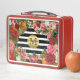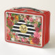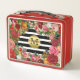 Trendy Monogram Stripes Roses Flowers Gold Glitter Metal Lunch Box