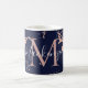 Trendy Navy and Rose Gold Foil Marble Monogram Coffee Mug