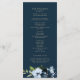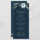 A floral theme with watercolor navy and light blue flowers. You can personalise the text and colours on this wedding program.
