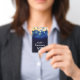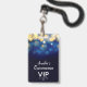 An elegant design of blue, navy, gold blurred lights, this Quinceañera birthday party invitation and VIP pass is printed on an unique plastic badge - order with or without a lanyard. MATCHING items in our store.