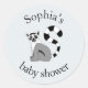 Trendy Neutral Jungle Lemur & Name Baby Shower Classic Round Sticker