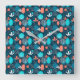 Trendy Nordic dusty blue navy copper rust floral Square Wall Clock