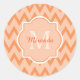 Trendy Orange Chevron Zigzag Name and Monogram Classic Round Sticker