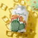 Chill out this summer and keep your drinks cool with this trendy bohemian prickly pear cactus print can cooler. The prickly pear cactus design features vibrant orange and yellow cactus flowers and your personalised name in green script. It's the perfect gift for yourself or a friend who loves cactus!