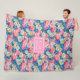 Trendy pastel blue and pink preppy monogram fleece blanket