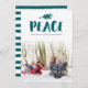 A teal brushy peace sentiment and hand drawn evergreen bough pair perfectly with your personalised holiday greeting in these trendy, modern holiday photo cards.