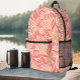 Fresh backpack design features a colourful floral pattern in trendy peach and coordinating orange with white accents. The flowers repeat on the front, top and sides. A stylish template on the front pocket allows for customisation with one or two initials. Contact me by Zazzle message with questions or custom colour requests.