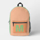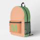Trendy peach sage green with Monogram name Printed Backpack