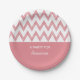 Trendy pink and white chevron pattern paper plates with a girly hand drawn coloured pencil pink chevrons. Personalise this modern and stylish pink zigzag design by adding the name of the party girl.