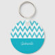 Trendy Pencil Turquoise Chevron Zigzags With Name Key Ring