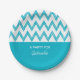 Trendy Pencil Turquoise Chevron Zigzags With Name Paper Plate