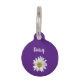 Cute Kitty Cat pet ID tag, with a white daisy on a purple background. With white customisable lettering, you can add your own information. The back allows you to add your name and telephone number if your pet gets lost. Perfect for adding a trendy style to your pet's fashion!