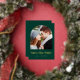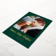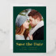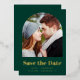 This simple, minimalist Save the Date card features a boho photo arch above the words "Save the Date" in bold real gold foil typography, followed by the couple's names, wedding date and city in sans serif font on an emerald green background. Add a more detailed message with additional information on the reverse.