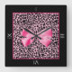 Trendy Pink And Black Leopard Hot Pink Ribbon Square Wall Clock