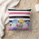 Trendy Pink and Black Stripes Floral With Name Cushion