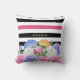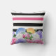 A trendy pink and black floral and stripes square throw pillow decorated with a colourful array of pretty flowers and wide horizontal stripes. You will be sure to capture attention when you personalise this trendy and cute design by adding your name.