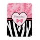 Trendy Pink and Black Zebra Pattern Bow and Name Magnet