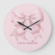 Trendy Pink Bow Personalised With Name Monogram Large Clock
