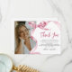 Thank Your graduation party guests with our chic and trendy graduation thank you cards. Sporting a sophisticated watercolor pink ribbon tied into a bow, and your favourite photo, these thank you cards eloquently merge style and elegance. Our easy-on-the-fingers personalisation feature makes it a joy to invite your loved ones.