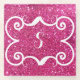 Trendy Pink Glitter White Monogram Custom Glass Coaster