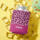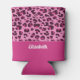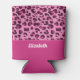 This stylish can cooler features a trendy pink leopard spots print pattern; easily customisable by adding your name or text on the fuchsia band on the lower part