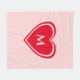 Trendy Pink Red Heart Monogram Valentine`s Fleece Blanket